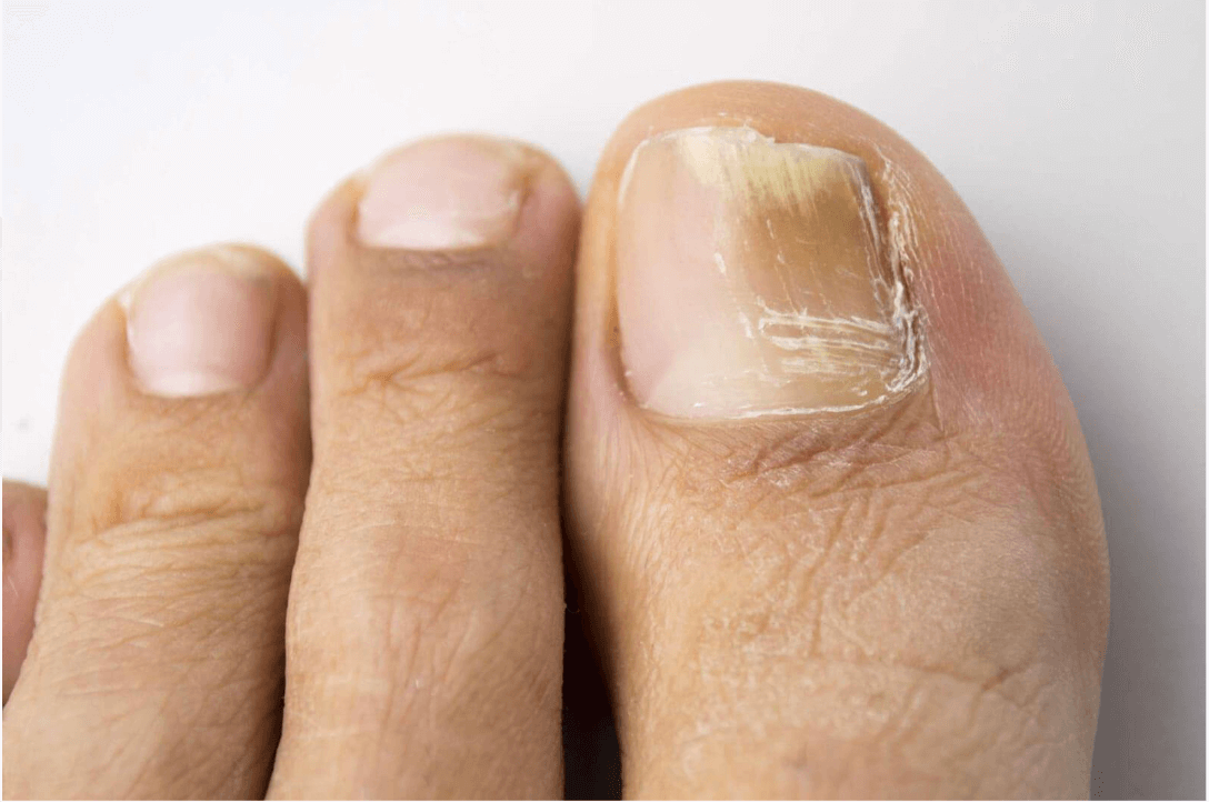 Det som initialt ser ut som en ofarlig missfärgning blir problematiskt när nageln inte längre växer stadigt eller infektionen sprider sig ytterligare.
